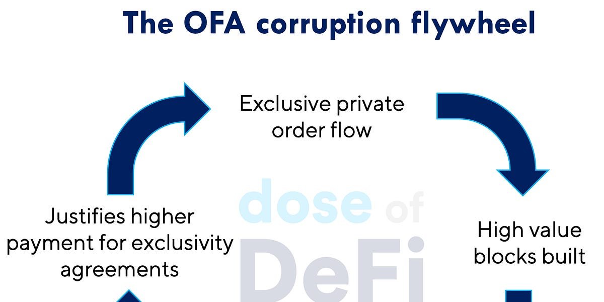 In order to stop this feedback loop, work must be done to introduce more competition and decentralization in both the OFA market and in the block builder market.
